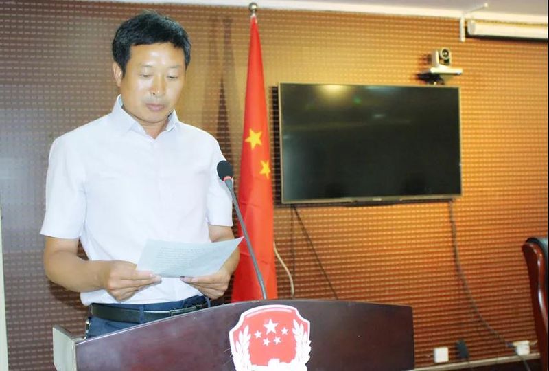 县司法局副局长郭景良宣读《中共延津县委全面依法治县委员会关于“法律进企业”法企共建工作实施方案》。